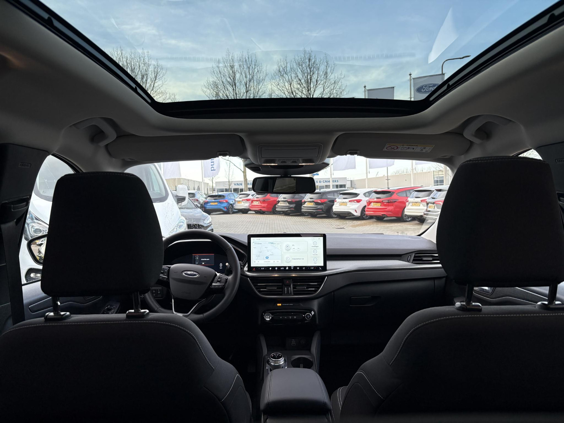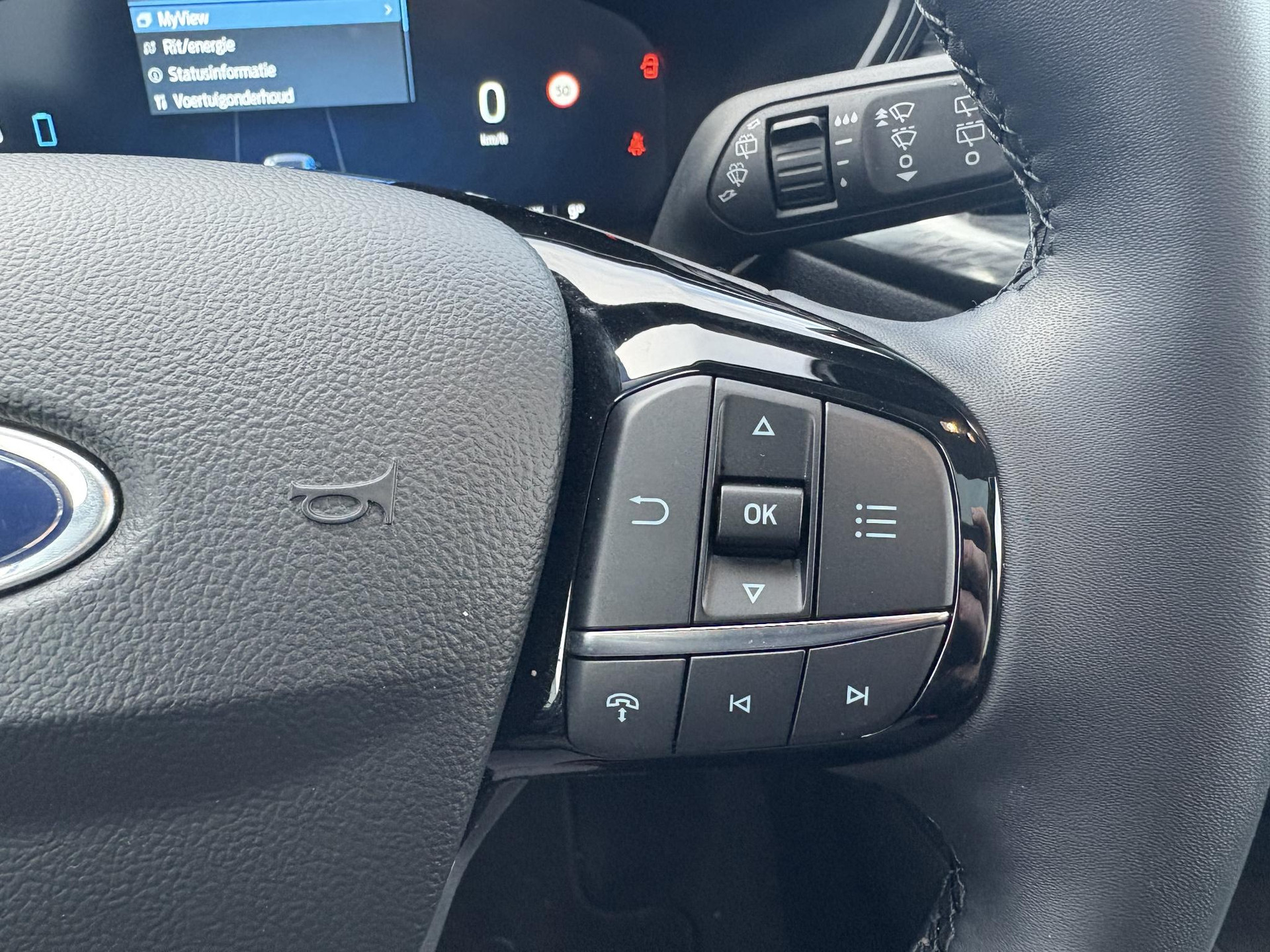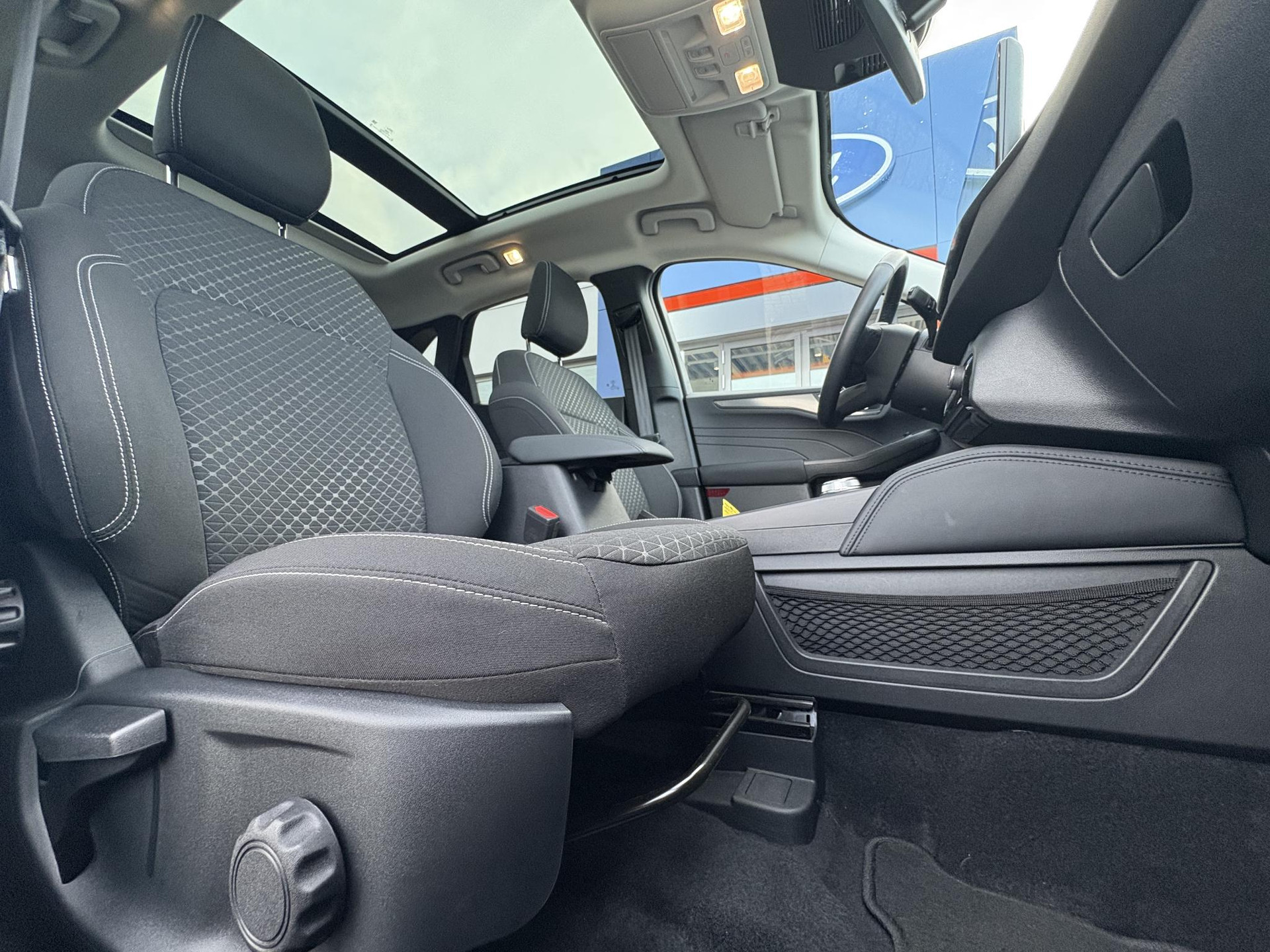 Deze Ford is voorzien van verschillende intelligente veiligheidsvoorzieningen. Ze kijken tijdens het rijden als het ware met u mee, ze signaleren potentieel gevaarlijke situaties en in een aantal gevallen kunnen ze ook ingrijpen. Tijdens de rit hebt u altijd een bijrijder, want de verkeersbord-detectie leest de borden langs de weg en projecteert ze voor u op het instrumentarium. Het Lane-keeping systeem zorgt dat u mooi binnen de lijntjes blijft. Ongemerkt buiten de rijstrook komen is er niet meer bij. Mindert een voorligger onverwachts te veel vaart, dan komt de forward collision warning in actie en waarschuwt meteen. Met voorzieningen als hill hold functie, vermoeidheidsherkenning, autonoom remsysteem en bandenspanningcontrolesysteem, bent u altijd veilig onderweg.