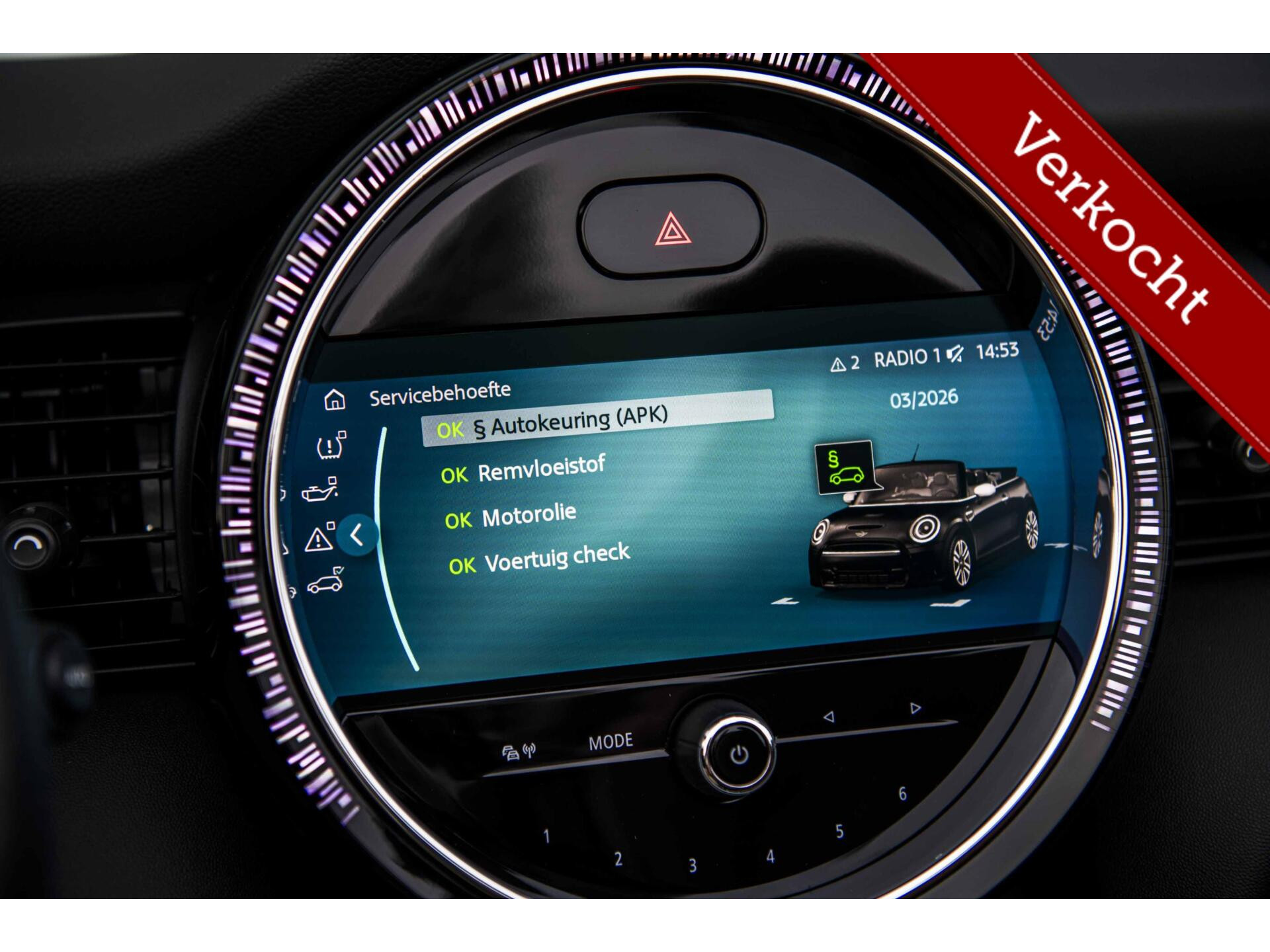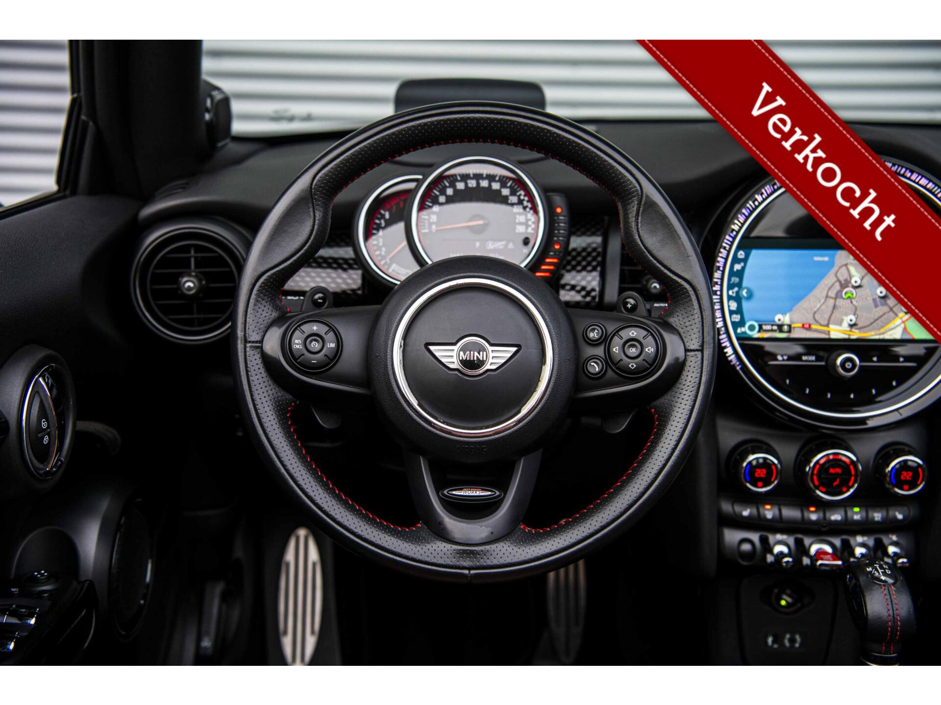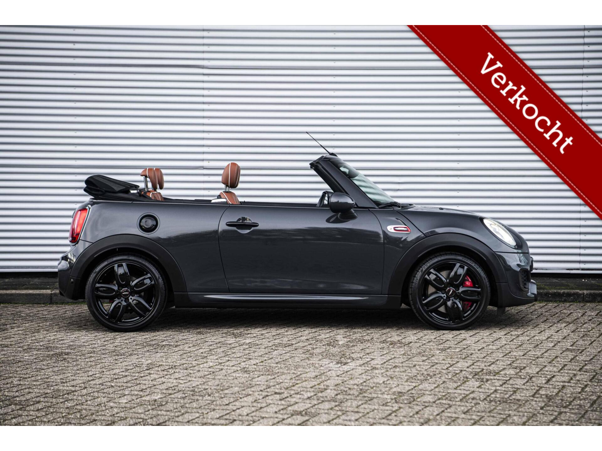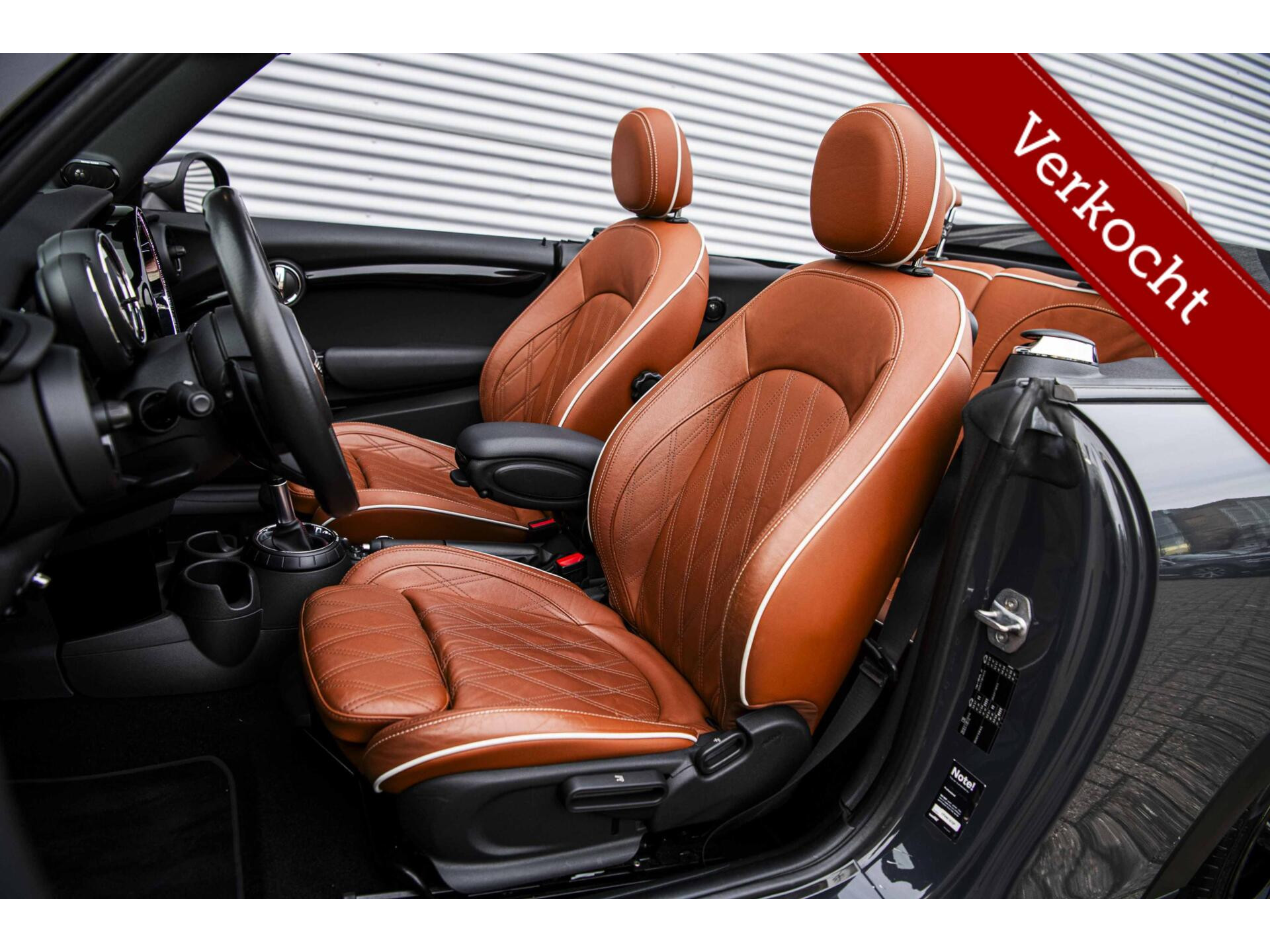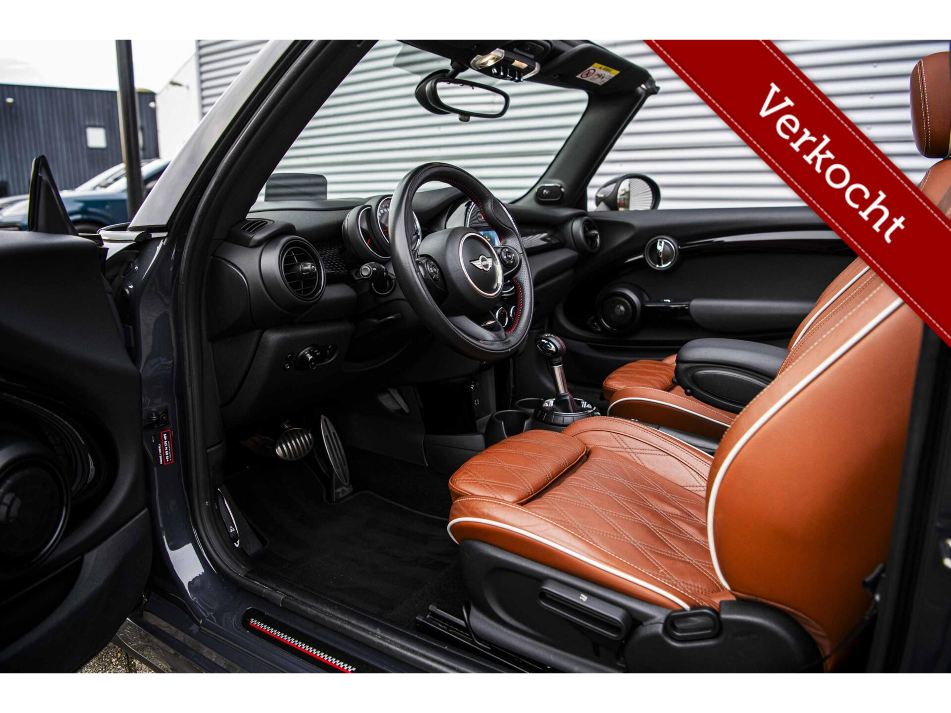 Grandioze MINI Cabrio John Cooper Works gehuld in ‘Thunder Grey’ met een bruin ‘Chester Malt Brown’ interieur en uiteraard in de meest luxe ‘Chili’ uitvoering. Uiteraard voorzien van de allerbelangrijkste opties: 18 inch Cup Spoke 2 wielen, Yours Cabriokap, Adaptief onderstel, Alarmsysteem, Windscherm, Camera, Piano Black Pack, Stoelverwarming, Head Up display, LED koplampen, Cruise Control, Harman & Kardon audio, Apple Carplay, Union Jack achterlichten en ga zo maar door. Afkomstig van de derde eigenaar en helemaal klaar voor de volgende liefhebber dan wel liefhebster. Hopelijk tot snel in Harderwijk!