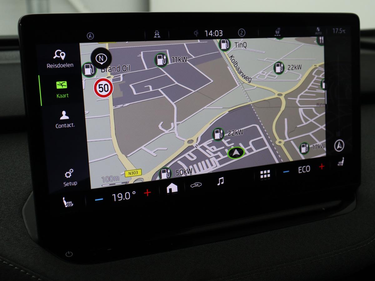 Dankzij het digitale dashboard in deze auto kan u de interface van uw cockpit personaliseren. Altijd achter zicht, nooit meer nekkramp! De achteruitrijcamera maakt het supermakkelijk. Handig en veilig: Connected Services. Alle vitale functies en data van de auto checkt u via de app op uw smartphone. Onderweg kunt u veilig genieten van het audiosysteem met DAB-radio en het full map navigatiesysteem. Want in deze Skoda bedient u ze vanaf het stuurwiel of met uw stem. Verdient de accu van uw smartphone ook aandacht? Opladen kan zonder snoeren, met de draadloze telefoonlader. Ook electronic climate control, regensensor, cruise control, keyless entry, automatisch dimmende binnenspiegel en centrale deurvergrendeling met afstandsbediening horen tot de voorzieningen op deze auto.
